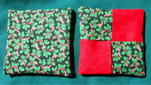 Many of the things I make end up to be “one-of-a-kind.” I use what material I have collected from various places. Some items are created to use up small pieces of fabric and incorporated with larger pieces. Many are to fill specific orders. Pictured below is a sampling of what I make. For larger pictures, and to see more information, check out this Handmade By Marian page. To contact me for more information about what I can make for you, or to make an order, please use our contact page.